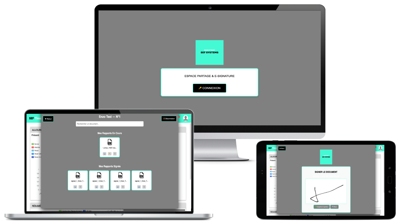 Glissez‑déposez vos rapports dans la plateforme : ils sont automatiquement envoyés aux collaborateurs concernés pour signature électronique et archivage.