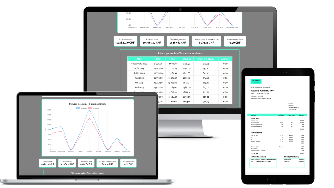 Pointage intelligent, planification dynamique, rapports automatisés et conformité intégrée (LTr/OLT, CCNT). Dites adieu aux erreurs, aux doublons et aux tâches manuelles chronophages.